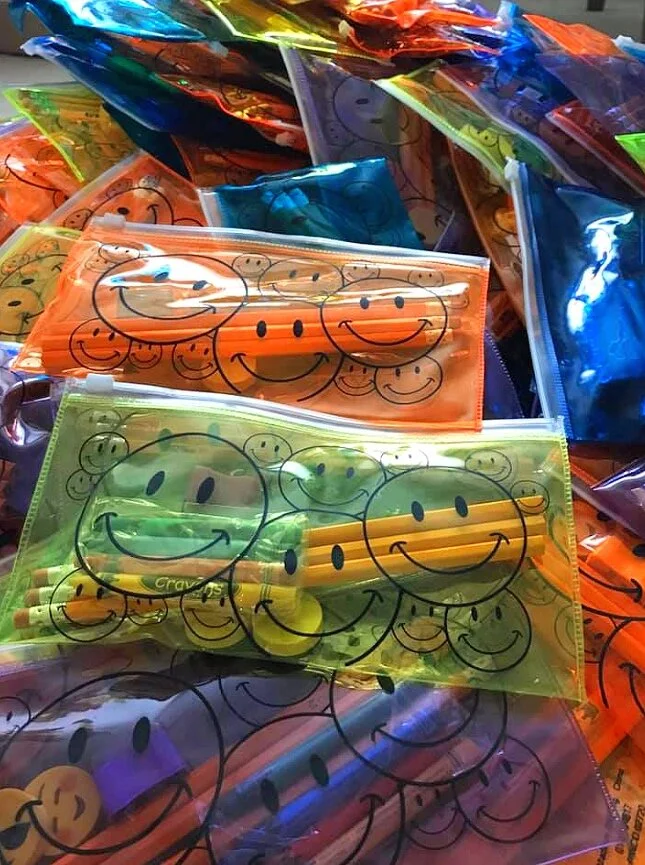 Countless Cares for Cambodia sends hundreds of school supply pouches to poverty-stricken children in Cambodia.
