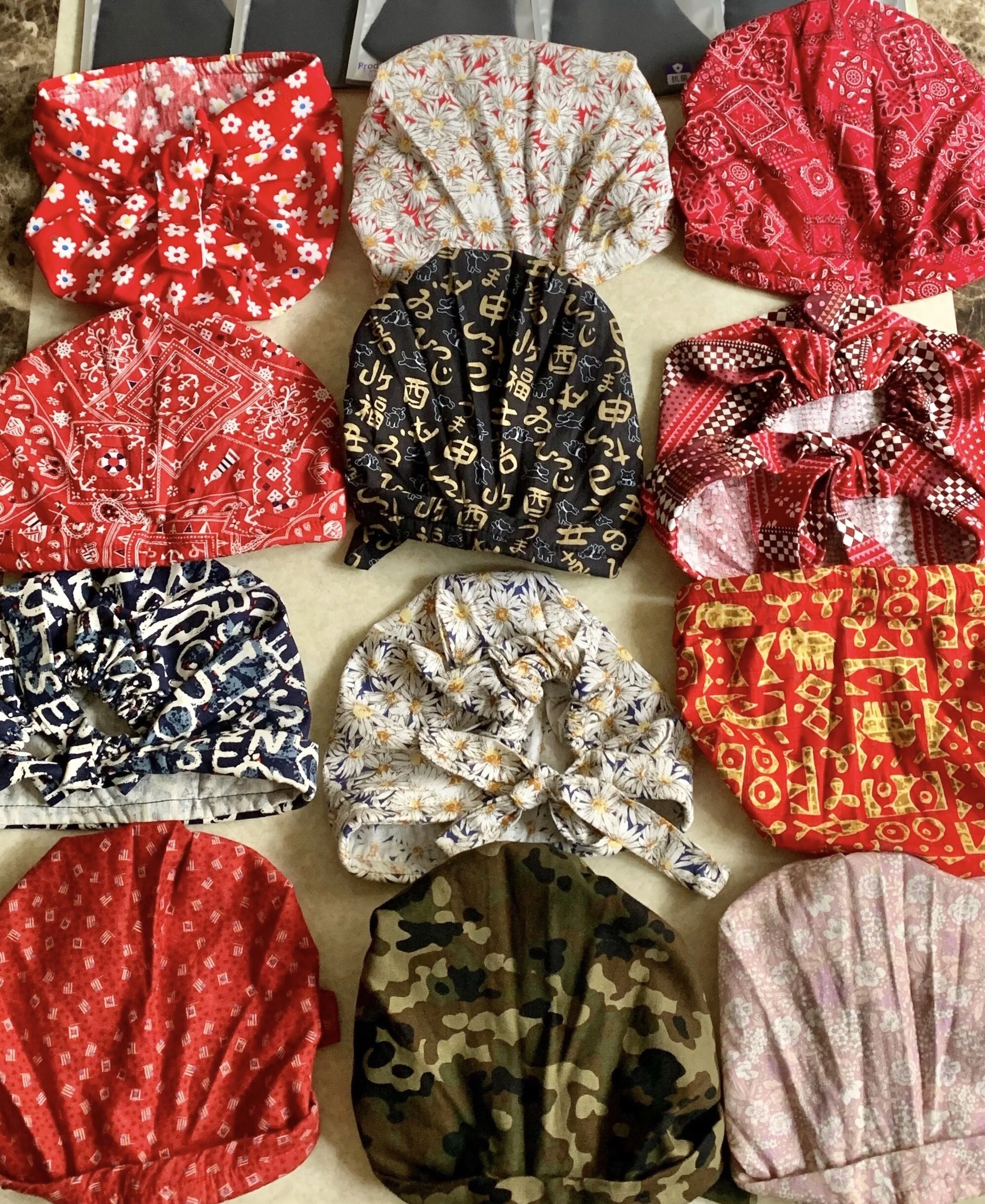 Sending colorful and bright reusable scrub caps to nurses at Yale New Haven Hospital.
