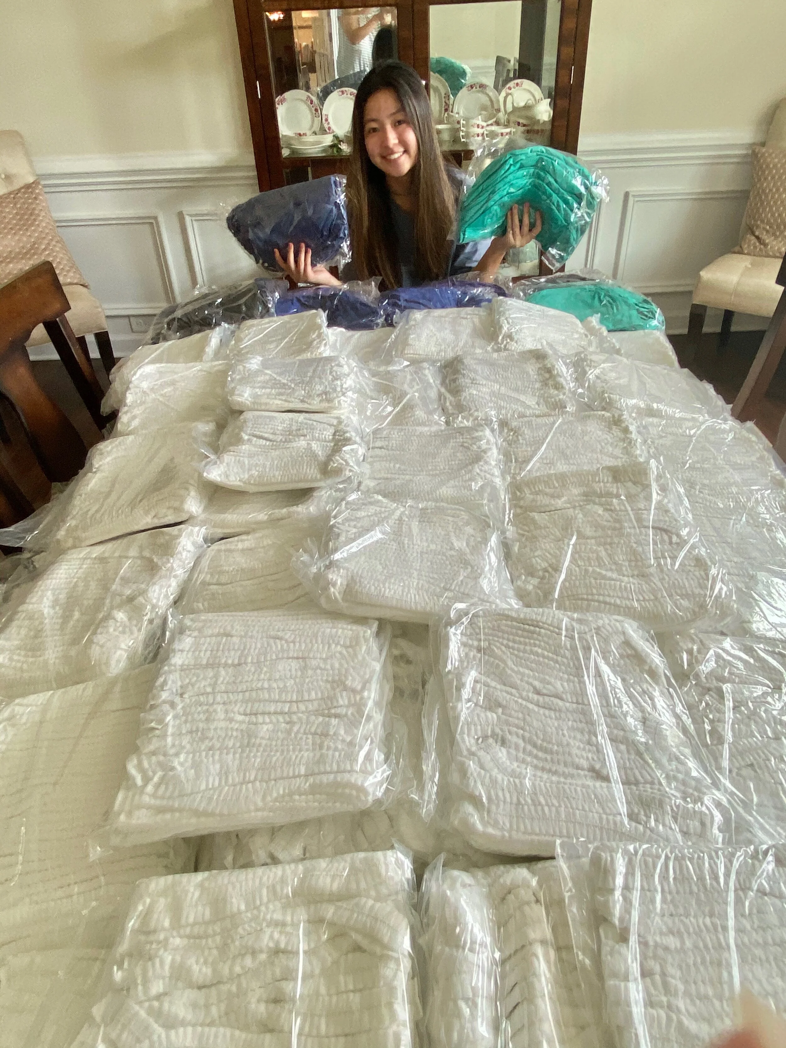 With the help and generosity from family members in Taiwan, we were able to collect 9,000 disposable and 100 reusable scrub caps.